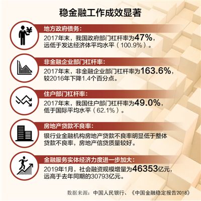 完善穩(wěn)金融的宏觀經濟政策框架。財政政策、貨幣政策等宏觀經濟政策與穩(wěn)金融之間存在很強的內在關聯性。要根據去年底召開的中央經濟工作會議的部署,強化財政政策和貨幣政策的逆周期調節(jié)作用,繼續(xù)實施積極的財政政策和穩(wěn)健的貨幣政策,著力穩(wěn)定總需求,為穩(wěn)金融創(chuàng)造良好的宏觀經濟環(huán)境。積極的財政政策要加力提效,實施更大規(guī)模的減稅降費,較大幅度增加地方政府專項債券規(guī)模;穩(wěn)健的貨幣政策要松緊適度,保持流動性合理充裕,改善貨幣政策傳導機制,提高直接融資比重,解決好民營企業(yè)和小微企業(yè)融資難、融資貴問題。