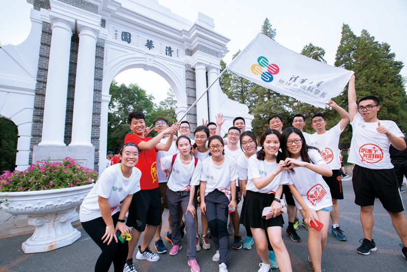 每年的畢業(yè)季,清華大學(xué)都會(huì)舉行畢業(yè)長(zhǎng)跑,即將離開母校的學(xué)子們沿著精心設(shè)計(jì)的路線,依次跑過那些承載著清華記憶的場(chǎng)所,重溫“自強(qiáng)不息 厚德載物”的校訓(xùn),上好離校前的“最后一課”。圖為2018年7月4日,畢業(yè)生們?cè)谥黝}為“擁抱新時(shí)代 青春正起航”的長(zhǎng)跑活動(dòng)中在二校門前合影。 清華大學(xué) 李浩然/攝