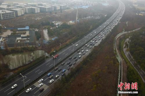 資料圖:2月21日,大批車輛由北向南緩慢行駛在南京二橋高速公路上,綿延數(shù)公里。 中新社記者 泱波 攝