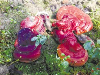 在這個培育房里,一排排貨架上整齊擺放著靈芝菌菌袋,如果仔細(xì)看,有的菌袋扎口處已經(jīng)冒出白色的菌絲。再經(jīng)過一段時間的發(fā)菌,就可以種植到地上使之繼續(xù)生長了。而在稍遠(yuǎn)一點的一個大棚里,已經(jīng)種植到地里的菌袋正在陽光和水汽的照拂下繼續(xù)生長。程攀說:“因為這里晝夜溫差大,所以溫室大棚棚頂都要蒙上黑色遮光布,白天遮擋陽光,保持適當(dāng)?shù)臏囟群蜐穸?,這樣才有利于靈芝菌的生長?!?/p>