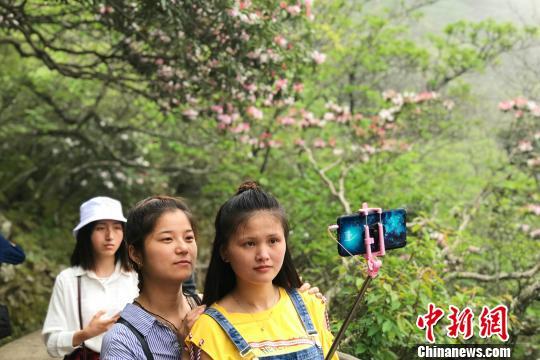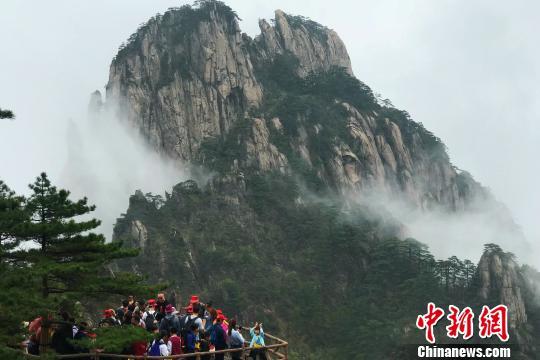 “五一”小長假期間,游客在黃山風景區(qū)拍照留念。 侯晏 攝