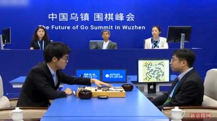 圖為2017年5月柯潔與AlphaGo的三番棋大戰(zhàn) 圖片來源:新京報網(wǎng)