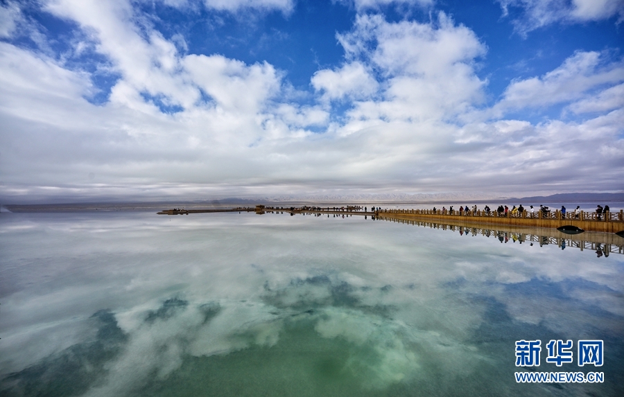 秋日的茶卡鹽湖,水天一色,風(fēng)光旖旎。新華網(wǎng)發(fā)(宋忠勇攝)