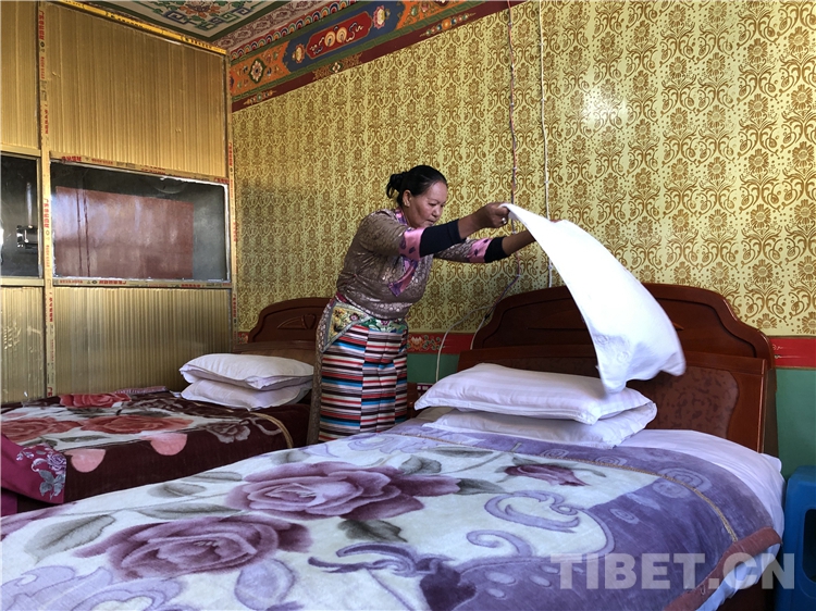 回想剛剛開(kāi)辦家庭旅館的日子,靦腆的金珠德吉忍不住多說(shuō)了幾句,2006年,金珠德吉和丈夫在村里開(kāi)起了第一家家庭旅館,那時(shí)候房子還是土坯房,并且只有4張床位,讓她沒(méi)想到的是第一年就有了3000多元的收入。