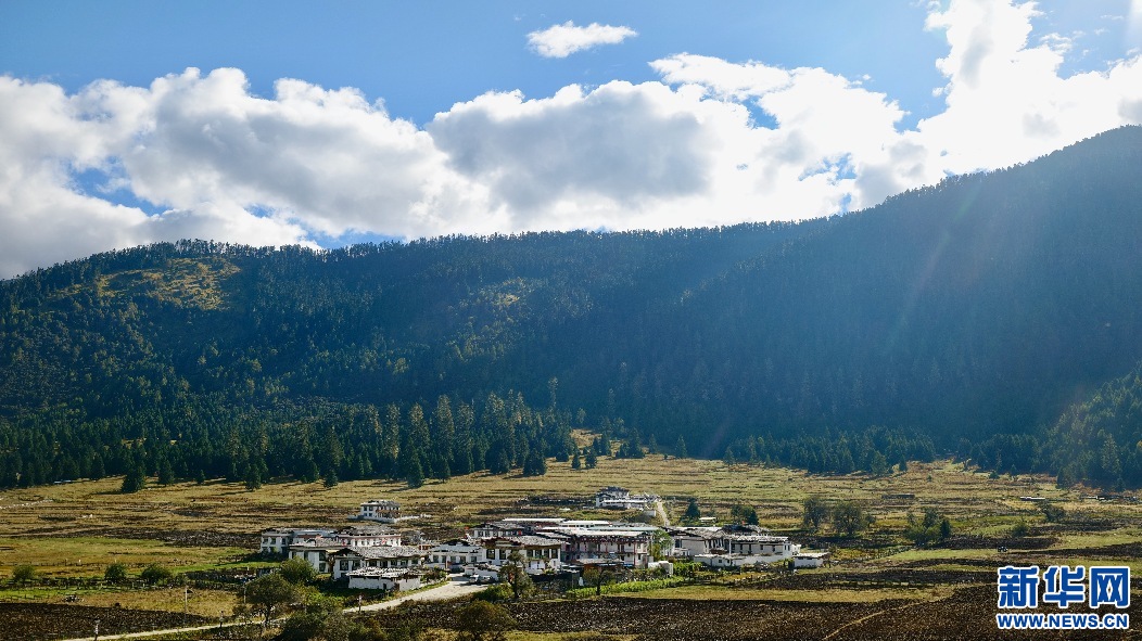 金秋十月的扎西崗村風(fēng)光(10月15日攝)。新華網(wǎng) 柑丹鴦琦攝