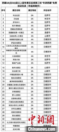 圖為西藏參與“冬游西藏”活動免費景區(qū)名錄。西藏旅游景區(qū)協(xié)會籌備組供圖