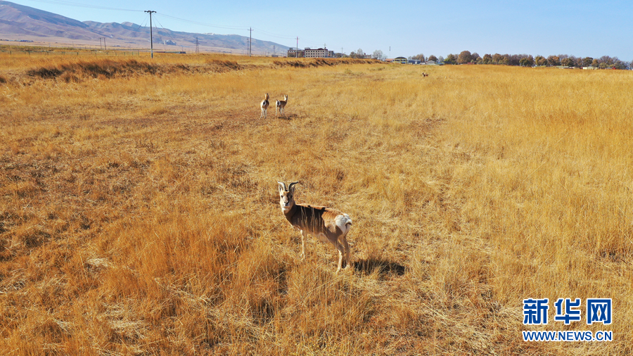 青海湖國家級自然保護(hù)區(qū)管理局南岸保護(hù)站,一群普氏原羚正在悠閑漫步。新華網(wǎng)發(fā)(汪要強(qiáng)攝)