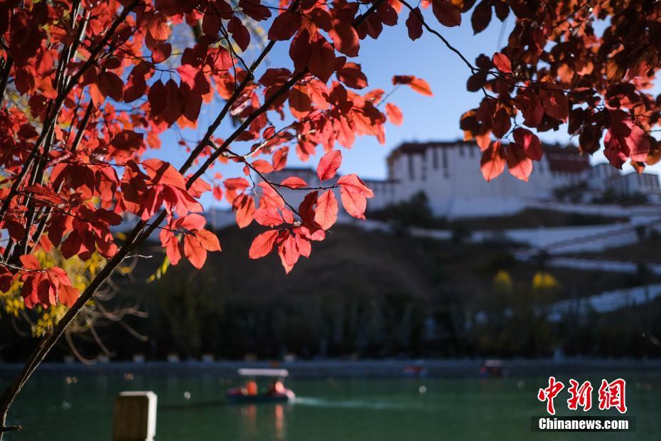 11月17日,秋冬交替,位于西藏拉薩布達拉宮腳下的宗角祿康公園內五彩斑斕,景色宜人。中新社記者 何蓬磊 攝