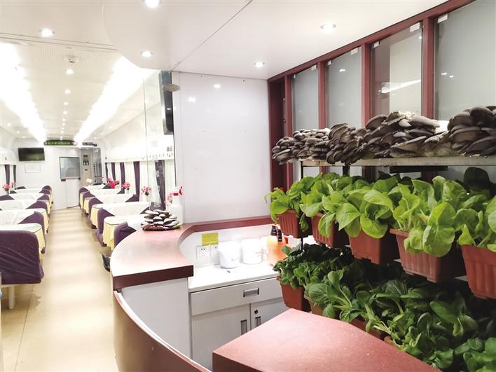 車窗外草原蒼茫,雪山巍峨,車廂里綠意盎然,一盆盆新鮮蔬菜隨著列車,一路西行,自由生長(zhǎng),旅客們吃著原汁原味的“泥土菜”,一路歡歌,一路美景到拉薩。(圖由青藏鐵路集團(tuán)有限公司提供)