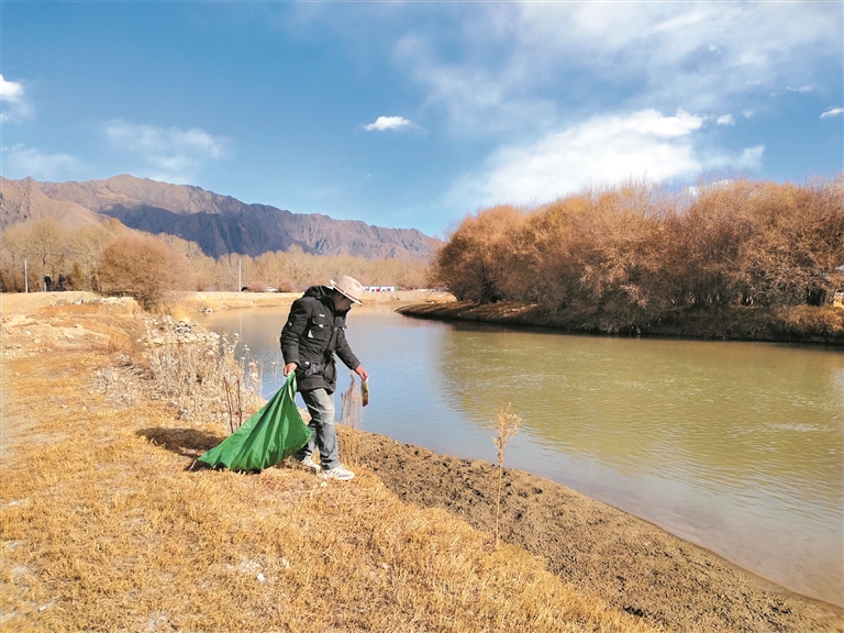 近日,記者在林周縣江熱夏鄉(xiāng)澎波河邊看到,部分村民正在清理河道垃圾。記者采訪得知,為保護(hù)生態(tài)環(huán)境,經(jīng)過(guò)鎮(zhèn)鄉(xiāng)兩級(jí)遴選審定,他們成為了河道管護(hù)員,主要負(fù)責(zé)轄區(qū)河道管護(hù)。