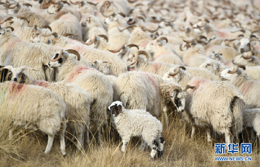 初冬時(shí)節(jié),一場小雪浸潤了青海湖北岸的草原,披著薄紗的草原草色金黃,這里成為母羊產(chǎn)羔的大“產(chǎn)房”。