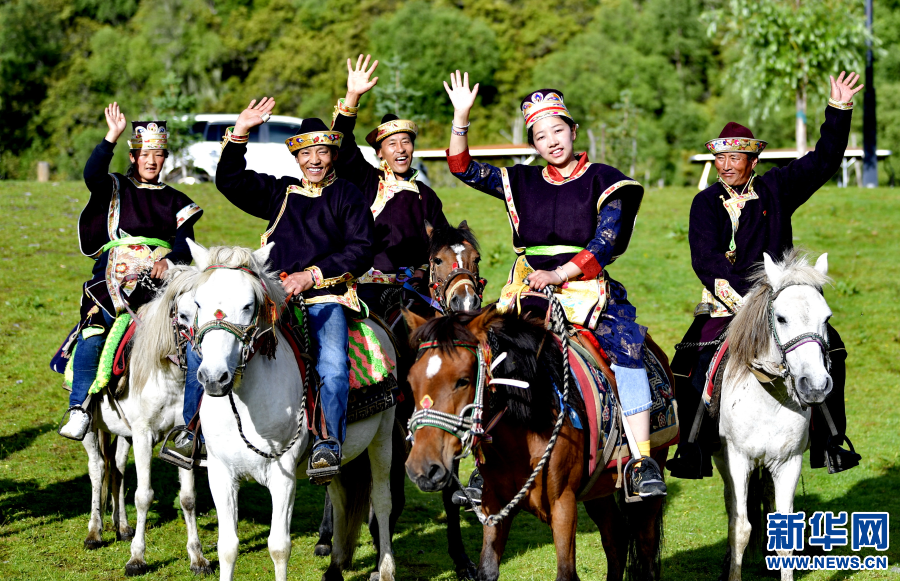 魯朗旅游小鎮(zhèn)農(nóng)牧民向游客招手致意,旅游業(yè)成為當(dāng)?shù)剞r(nóng)牧民重要收入來(lái)源(7月26日攝)。新華社記者 張汝鋒 攝