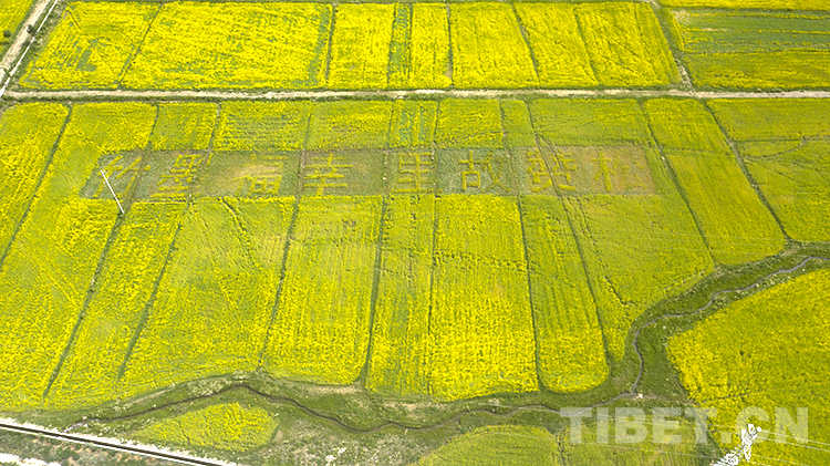 值得一提的是,在扎西崗鄉(xiāng)主會(huì)場(chǎng),當(dāng)?shù)貙⒒牡刂匦麻_墾,安排種植了油菜花大地景觀。不同品種、不同顏色的油菜花海為背景的種植,從空中俯瞰形成了“喜迎二十大”“松贊故里 幸福墨竹”字樣和松贊干布、文成公主、哈達(dá)、愛心等圖樣,表達(dá)當(dāng)?shù)厝罕娤灿h的二十大的美好祝福。