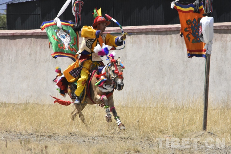 伴隨著一聲令下,騎手們駕著馬匹風(fēng)馳電掣般在賽道上飛奔,有的一邊騎馬一邊拉弓搭箭,準(zhǔn)確地射中箭靶;有的在騎馬過程中展示俯身撿物等特技動作,引來陣陣喝彩聲。賽馬結(jié)束,一條條潔白的哈達、一杯杯青稞酒,獻給英勇的騎手,表達村民真誠的禮贊與祝福。(中國西藏網(wǎng) 記者/拉姆 實習(xí)生德吉卓嘎)