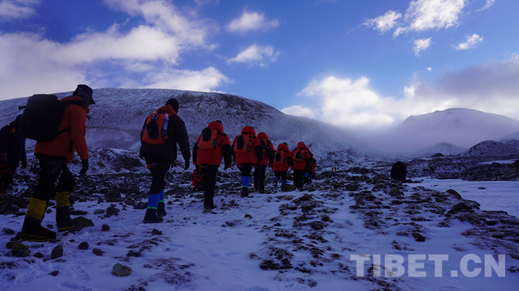 當(dāng)天凌晨4點,西藏拉薩市當(dāng)雄縣羊八井鎮(zhèn)周圍還是一片寂靜之時,參加洛堆峰登山探險活動的山友們已從羊八井高山訓(xùn)練基地出發(fā)前往洛堆峰登山探險。經(jīng)過長達7小時30分左右的長途跋涉,第一批登山人員成功登頂海拔6010米的洛堆峰,此時金色的太陽早已籠罩大地,白皚皚的雪山聳立在大地之上,在陽光的照耀下顯得格外壯觀。