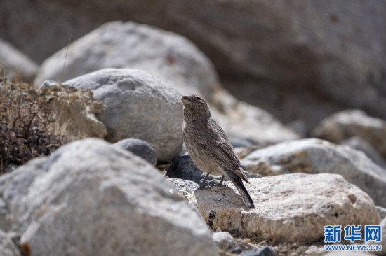 5月13日,棲息在珠穆朗瑪峰游客大本營(yíng)附近的褐翅雪雀。新華網(wǎng) 旦增努布 攝