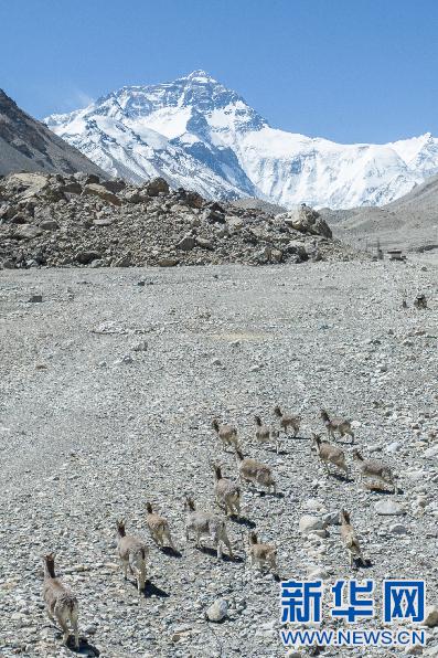 5月9日,棲息在珠穆朗瑪峰登山大本營(yíng)附近的巖羊。新華網(wǎng) 旦增努布 攝