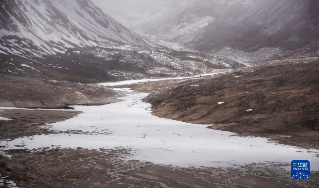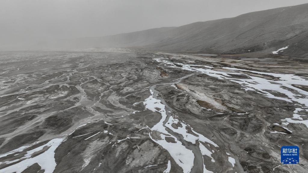 杰瑪央宗冰川融化后形成的河床(5月31日攝,無(wú)人機(jī)照片)。新華社記者 晉美多吉 攝