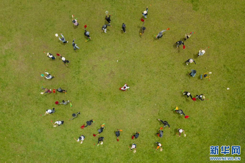 7月12日,西藏昌都市丁青縣尺犢鎮(zhèn)烏巴村文藝演出隊在排練(無人機照片)。 新華網 旦增努布 攝