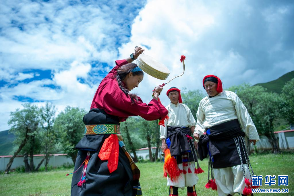 7月12日,西藏昌都市丁青縣尺犢鎮(zhèn)烏巴村文藝演出隊隊員在排練。 新華網 旦增努布 攝