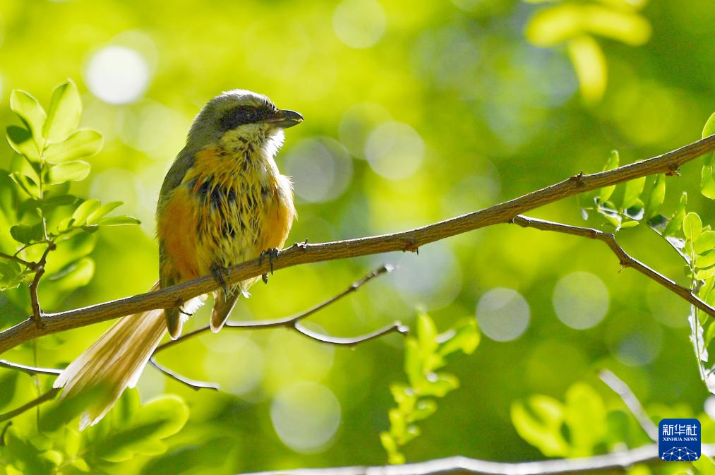 在拉薩市城關(guān)區(qū)一處庭院,一只伯勞飛離枝頭(7月28日攝)。新華社記者 張汝鋒 攝