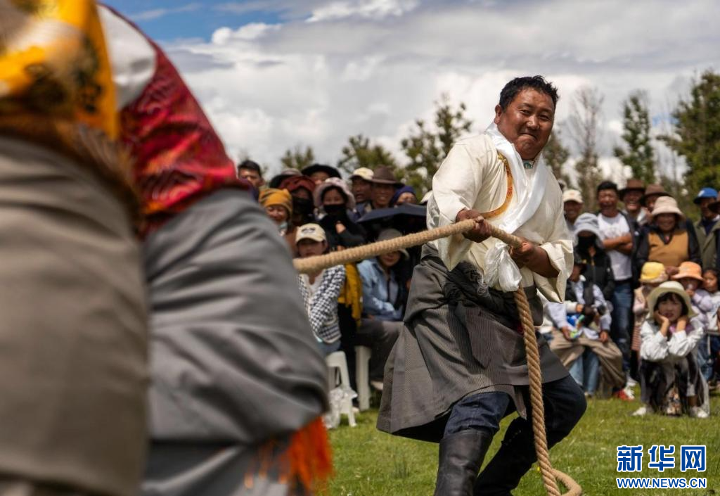 圖為達(dá)孜“望果節(jié)”拔河比賽現(xiàn)場(7月28日攝)。新華網(wǎng)發(fā) 司秦菱 攝