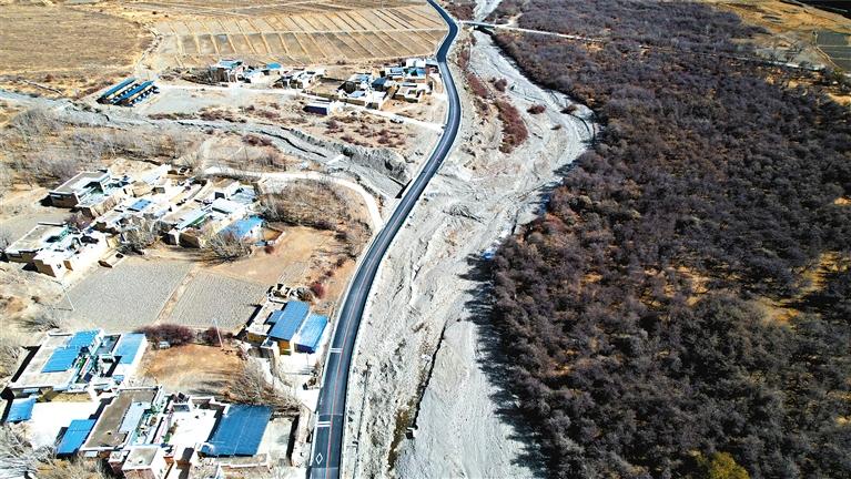 12月12日,山南市瓊結縣拉玉鄉(xiāng)鄉(xiāng)村旅游公路拓寬工程項目通車儀式在拉玉鄉(xiāng)白那村舉行。該公路長度為10.18公里,路基寬度為7.5米,屬于三級公路,總投資3500萬元。這條鄉(xiāng)村旅游公路的建成通車,不僅方便周邊村民出行,同時對開發(fā)當?shù)剜l(xiāng)村旅游資源具有重要價值。 拉玉鄉(xiāng)鄉(xiāng)村旅游公路(無人機照片)。白瑪澤旺 攝