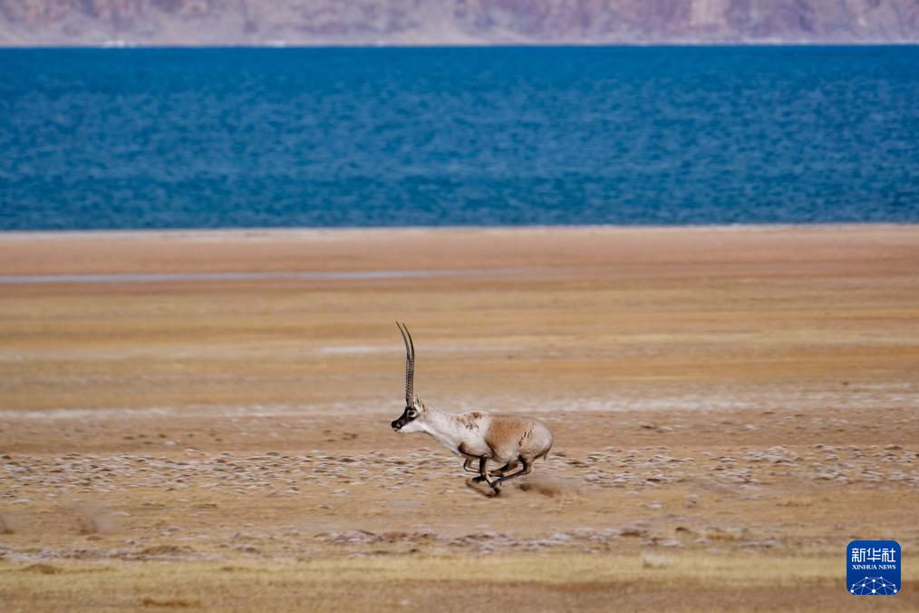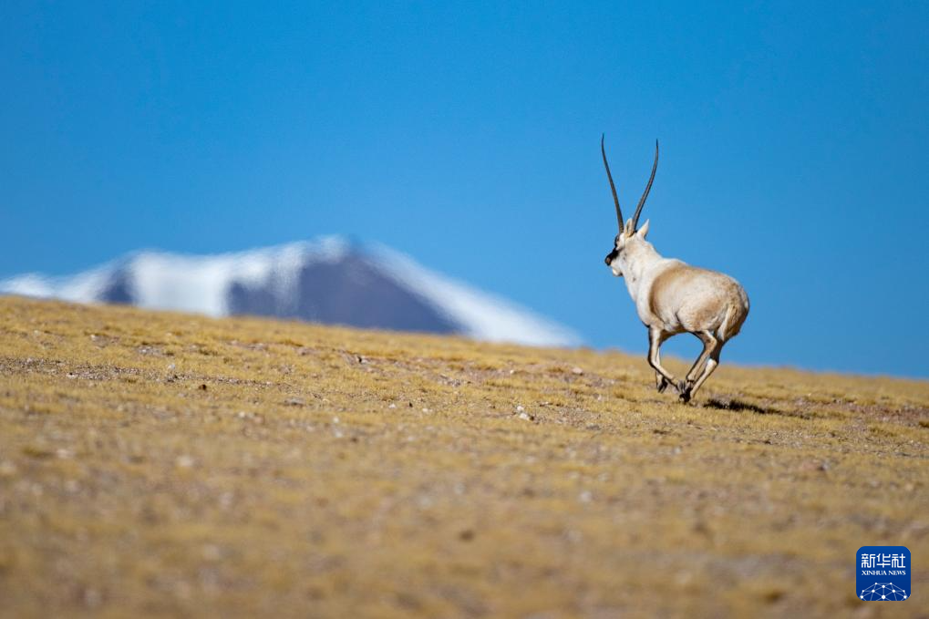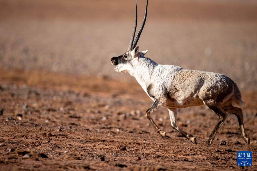 在羌塘國家級自然保護(hù)區(qū),一只雄性藏羚羊在奔跑(12月16日攝)。新華社發(fā)(旦增努布 攝)