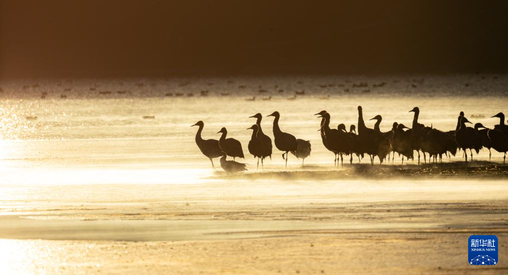 拉薩北部的林周縣平均海拔約4200米,是黑頸鶴的主要越冬地之一。清晨的陽(yáng)光灑在林周縣虎頭山水庫(kù),水面波光粼粼,鶴影婀娜多姿。