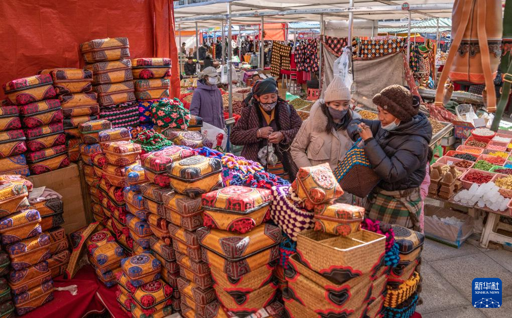 1月9日,商戶(hù)在推銷(xiāo)“巴珠”(藏族頭飾)。新華社發(fā)(丁增尼達(dá) 攝)