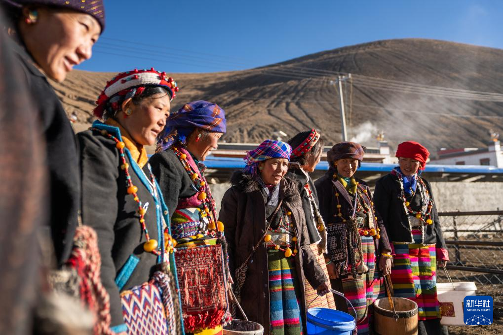 1月13日,時值西藏日喀則一帶傳統(tǒng)的農家新年大年初二。坐落于群山間的日喀則市白朗縣東喜鄉(xiāng)思古龍村,延續(xù)傳統(tǒng)習俗,舉行擠牛奶、擲牛角等傳統(tǒng)文體比賽和翻桶接力賽等娛樂活動,以此慶祝新年。