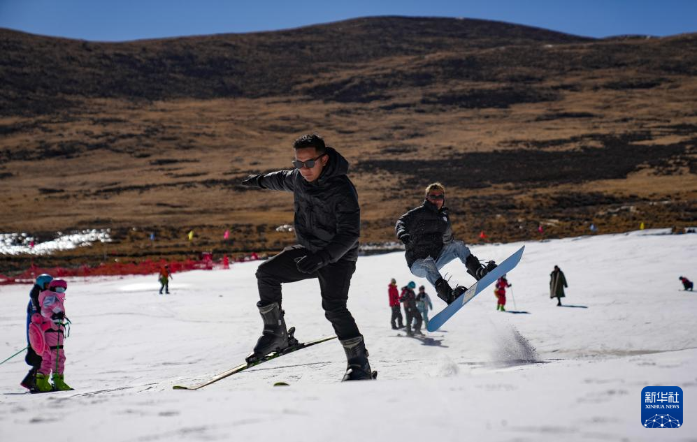 1月13日,滑雪愛好者在墨多滑雪場滑雪。新華社記者 晉美多吉 攝