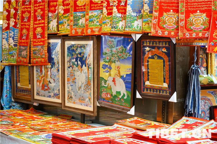 圖為各式各樣的藏式春聯(lián)成為年貨市場的新“寵兒” 攝影:趙振宇