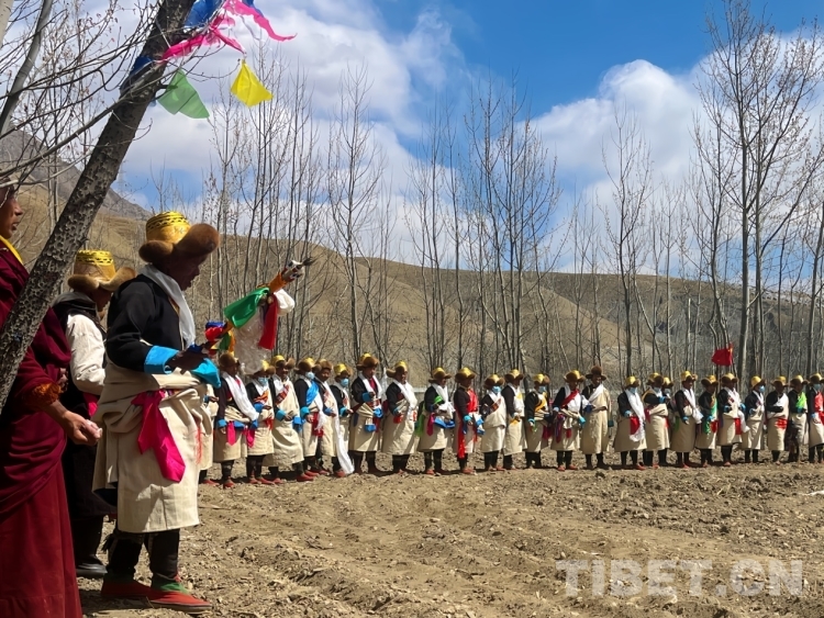 3月16日,在西藏拉薩市林周縣春堆鄉(xiāng)的春耕儀式現(xiàn)場,當?shù)厝罕姳硌莶貞?。新華社記者 張汝鋒 攝 ??