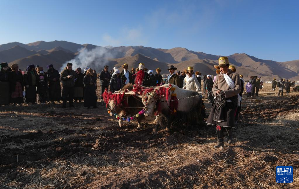 這是3月16日拍攝的西藏山南市瓊結(jié)縣加麻鄉(xiāng)加麻村的春耕儀式現(xiàn)場。新華社記者 旦增尼瑪曲珠 攝 ??
