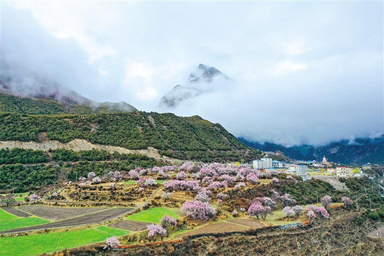 人間四月,春色正濃。在那曲市嘉黎縣尼屋鄉(xiāng),易貢藏布兩岸的山坡上,粉紅、粉白的桃花連片綻放,燦若云霞。