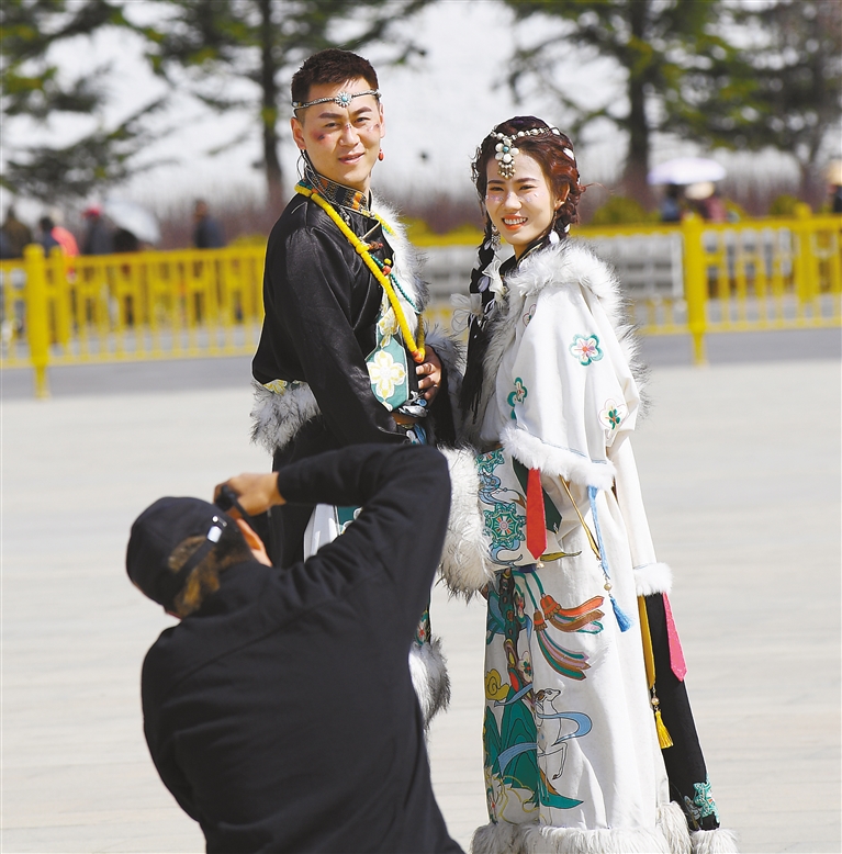 身著藏裝拍攝寫真的游客。記者 洛桑 攝