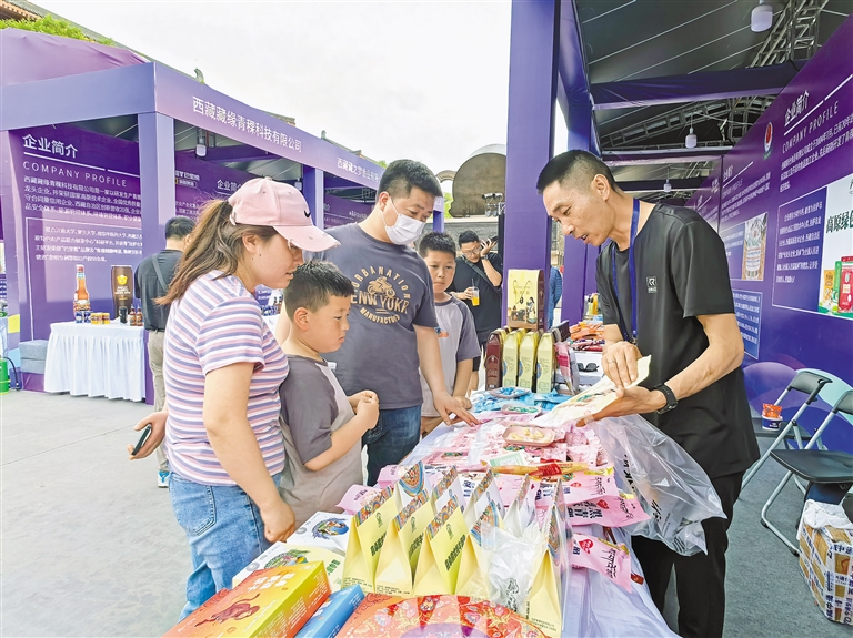 “牦牛肉干、青稞餅干等西藏特產(chǎn)都是健康綠色有機食品,應(yīng)該讓更多的人了解?!睆暮眮砦靼猜糜蔚睦壮F(xiàn)場購買了一聽青稞啤酒,打開品嘗后,他豎起了大拇指。從未踏足西藏的他,在西安品嘗到了西藏“味道”。