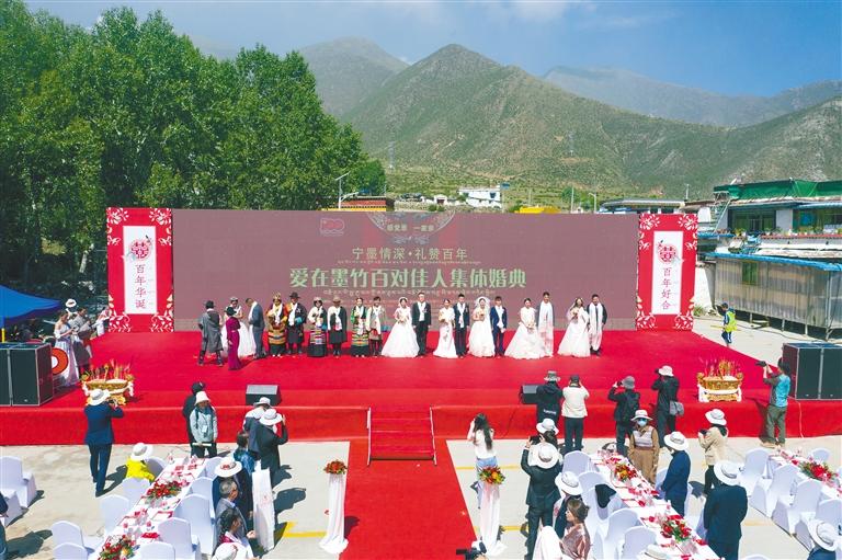 墨竹工卡縣舉行愛在墨竹百對(duì)佳人集體婚典現(xiàn)場(chǎng)。