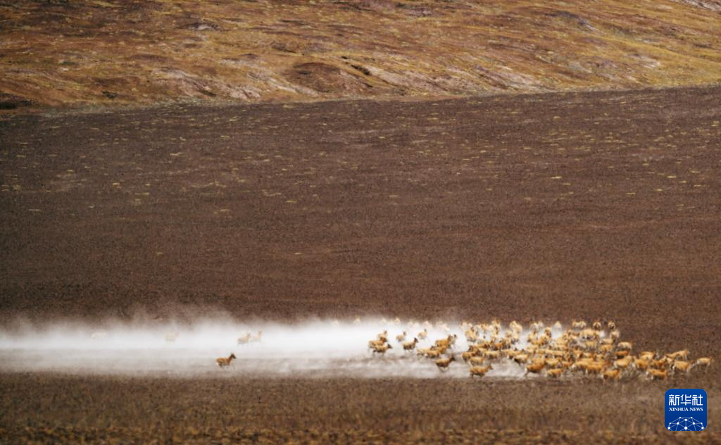 6月13日,在羌塘國家級(jí)自然保護(hù)區(qū),遷徙中的藏羚羊奔跑起來。新華社記者 費(fèi)茂華 攝