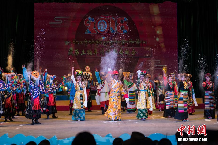 2月10日,隨著2018年春節(jié)和藏歷新年的日益臨近,西藏拉薩的節(jié)日氣氛越來越濃。當晚一場傳統(tǒng)歌舞晚會,提前為拉薩民眾送去新春的祝福。晚會以傳統(tǒng)藏戲、歌舞、小品等表演形式,把藏民族古老的藏戲、卓舞、鍋莊等非物質(zhì)文化遺產(chǎn)搬到了新年舞臺。圖為中國國家級非物質(zhì)文化遺產(chǎn)《卓舞》表演。中新社記者 何蓬磊 攝