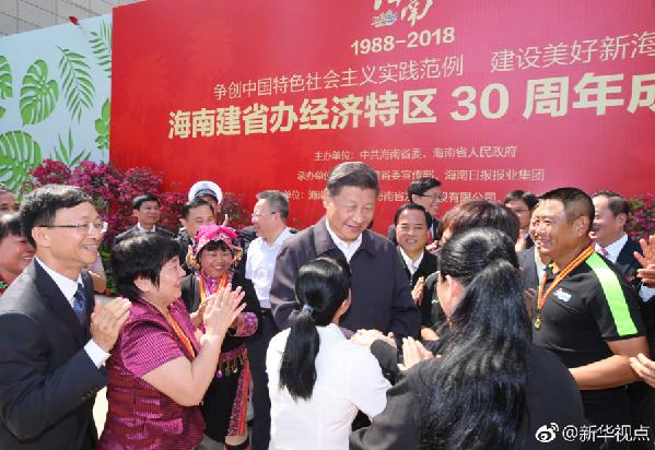 13日上午,習(xí)近平總書記在??谑袇⒂^了海南建省辦經(jīng)濟特區(qū)30周年成就展,對30年來特別是黨的十八大以來海南經(jīng)濟社會發(fā)展成就給予肯定。他指出,貫徹黨中央精神不是喊口號,要結(jié)合當(dāng)?shù)貙嶋H、經(jīng)過深入調(diào)研形成符合黨中央精神的一系列具體舉措,并在實施中早見成效、大見成效。