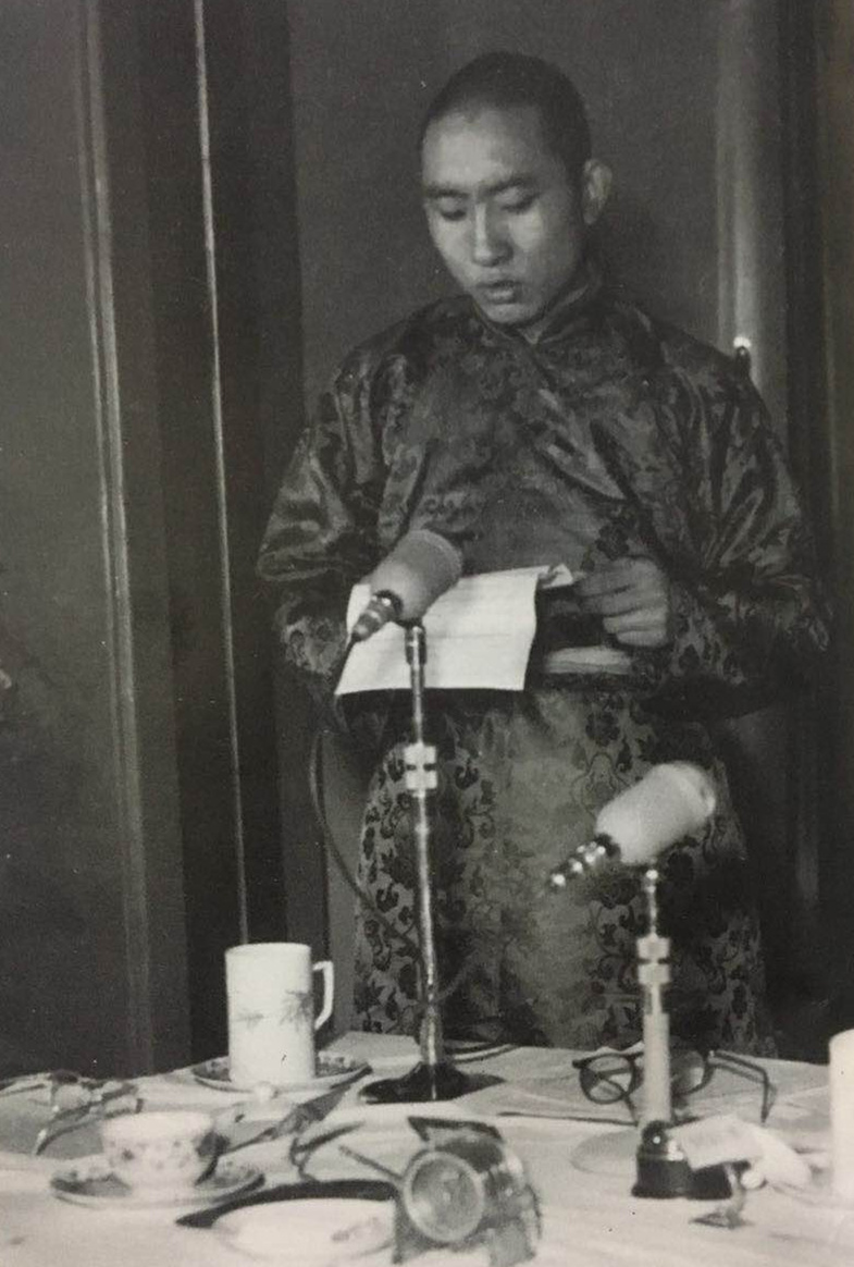 圖為1955年3月9日 十世班禪在國務(wù)院全體會議第七次會議上發(fā)言。翻拍自《班禪額爾德尼評傳》