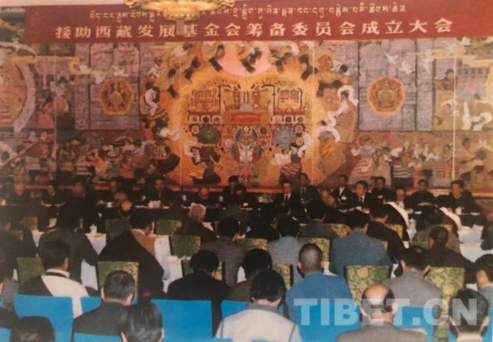 十世班禪大師和阿沛o阿旺晉美同志積極爭取到中央領導和各有關方面的支持贊同,在習仲勛等領導同志親筆批示關懷下,援藏基金會籌備委員會成立大會終于在1987年4月15日于人民大會堂西藏廳成功召開。班禪大師和阿沛o阿旺晉美同志共同擔任籌備委員會主任,帕巴拉o格列朗杰等40多位德高望重的領導人和各界知名人士任籌委會委員,熱地、趙樸初等20多位中央和西藏等省區(qū)領導同志擔任顧問。烏蘭夫同志代表黨中央、國務院講話,向大會表示熱烈祝賀,強調(diào)了“黨中央對支持西藏發(fā)展進步一系列重大的特殊政策和靈活措施”不會變,希望援藏基金會“對西藏及四省藏區(qū)各項建設事業(yè)發(fā)展發(fā)揮輔助作用”。班禪大師聽了烏蘭夫副主席的鼓勵也非常高興,他動情的規(guī)劃道:“西藏山河壯麗、幅員遼闊、資源豐富、風景迷人,來自世界的各方友人都對西藏很感興趣,愿意為西藏的經(jīng)濟發(fā)展、文化技術事業(yè)進步提供援助。援藏基金會的宗旨就是聯(lián)絡各方友好人士和友好政府、組織、團體,為西藏社會發(fā)展提供不附加任何政治條件的資金和實物援助?;I集基金將直接用于發(fā)展西藏的經(jīng)濟、文化、教育、衛(wèi)生、科技事業(yè),包括名勝古跡和著名寺廟的維修、藏醫(yī)藏藥的挖掘整理和開發(fā)等?!贝髱熤朴喅龌饡_總部辦公室和北京辦公室的詳盡年度工作預案,還胸有成竹地預告,待籌備委員會做出成績來,基礎和條件成熟后,將正式成立援藏基金會。