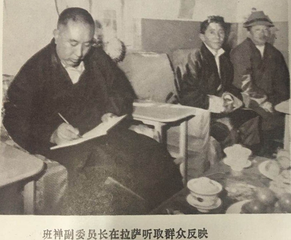 圖為十世班禪在拉薩聽(tīng)取群眾反映。 圖片翻拍自《西藏文史資料選輯》