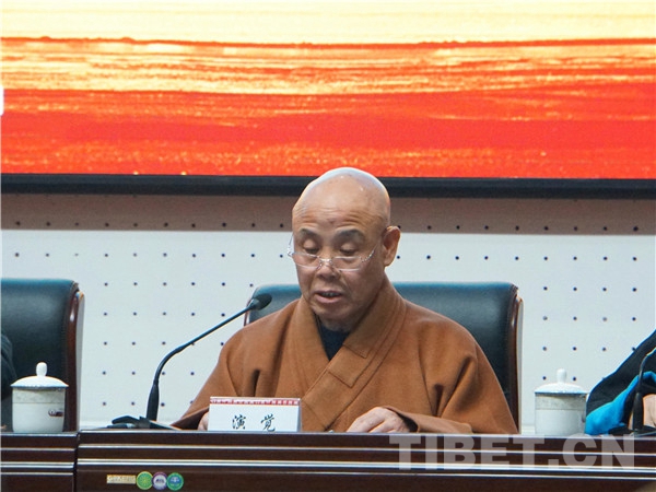 演覺法師總結(jié)了十世班禪大師的功績,他在發(fā)言中表示,要將對大師的懷念與學(xué)習(xí)轉(zhuǎn)化為推動藏傳佛教事業(yè)健康發(fā)展的動力,轉(zhuǎn)化為維護民族團結(jié)、祖國統(tǒng)一的堅定行動,轉(zhuǎn)化為莊嚴(yán)國土、利樂有情的篤實愿行。
