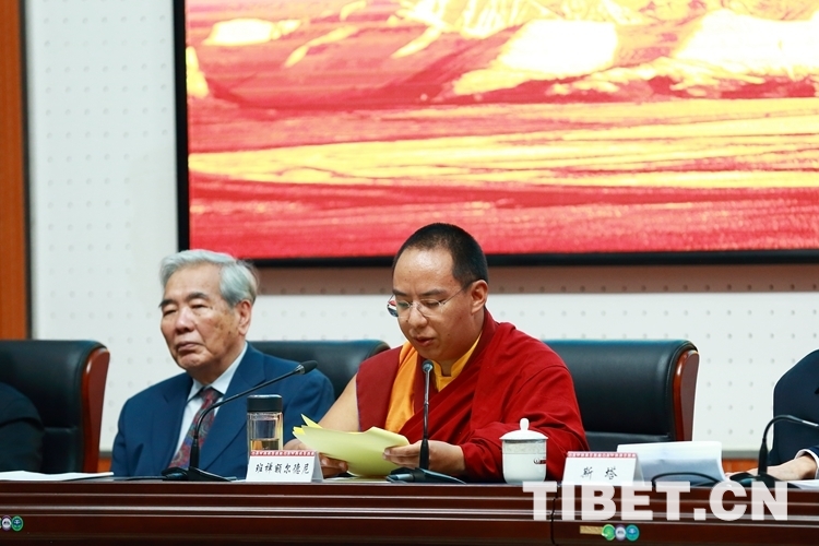 圖為十一世班禪在研討會(huì)上講話。攝影:陳衛(wèi)國