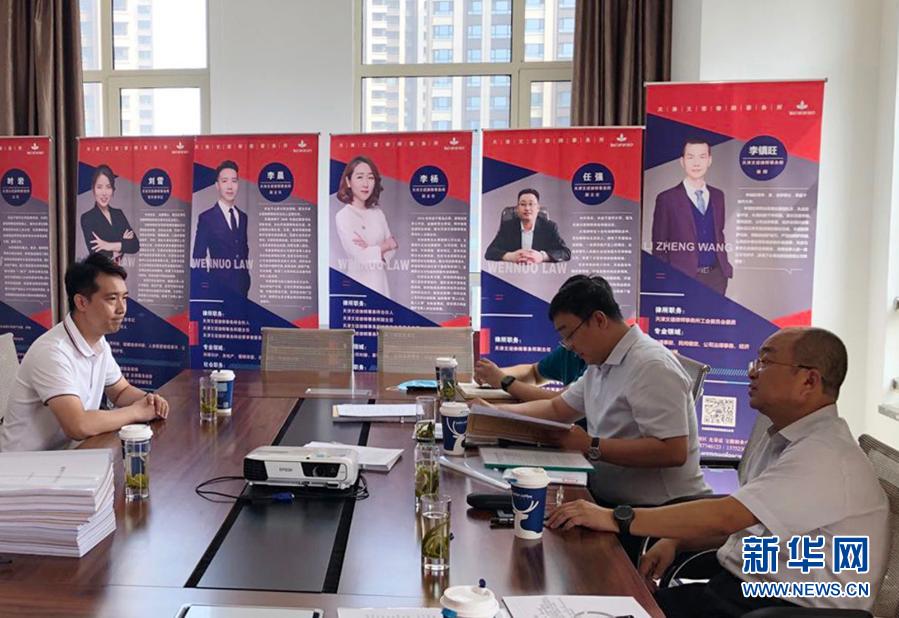 全國人大代表才華(右一)在天津一家律師事務所調(diào)研(資料照片)。新華社發(fā)