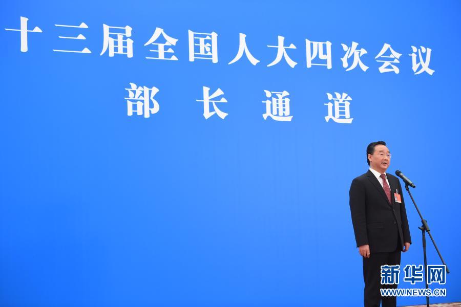 3月5日,第十三屆全國人民代表大會第四次會議舉行首場“部長通道”采訪活動。這是財政部部長劉昆通過網絡視頻方式接受采訪。新華社記者 陳曄華 攝
