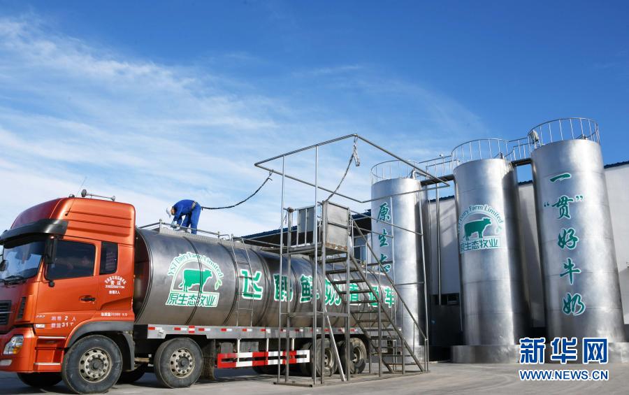 在黑龍江飛鶴乳業(yè)股份有限公司專屬的甘南縣瑞信達(dá)原生態(tài)牧場,工作人員在檢查一輛剛裝完鮮奶的全封閉低溫安全運(yùn)輸車(2018年10月30日攝)。新華社記者王建威攝